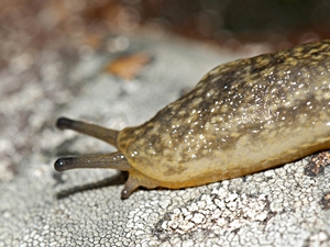 ![]() Gelbgefleckte Wegschnecke (Geomalacus maculosus), auch als Kerry-Nacktschnecke bezeichnet, aus Ermelo, Vila Real, Portugal. |