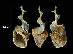 ![]() Schließapparat (Clausiliar) der Gemeinen Schließ- mundschnecke (Alinda biplicata). Bild: Jiří Novák, biolib.cz. ![]() |