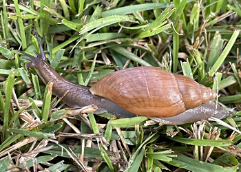 ebenfalls eingeschleppte Afrikanische Riesenschnecke (Lissachatina fulica)