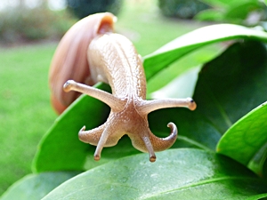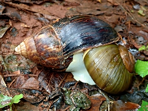 ![]() Rosige Wolfsschnecke (Euglandina rosea) greift Achatschne- cke (Lissachatina fulica) an. |