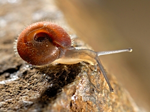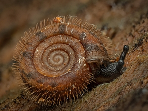 ![]() Riemenschnecke (Helicodonta obvoluta) mit behaartem Ge- häuse. Die Haare dienen unter anderem als Tarnmittel. Bild: Robert Nordsieck. |
