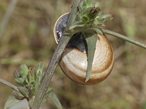 ![]() Schwarzmund-Feldschnecke (Otala lactea): Fallbrook, Kalifor- nien, USA. Bild: Christian Schwarz (iNaturalist). |