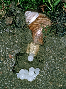![]() Weinbergschnecke bei der Eiablage. Bild: © Klaus Bogon. |