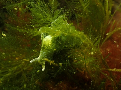 ![]() Grüne Samtschnecke (Elysia viridis): Schouwen-Duiveland, Niederlande. Bild: Lynn Biscop (iNaturalist). |