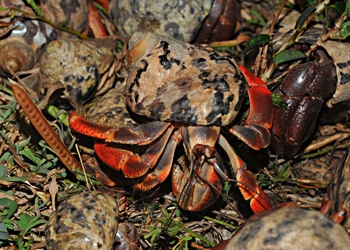 ![]() Westindische Kreiselschnecke (Cittarium pica) als Zweitwohnsitz für den Karibischen Landeinsiedlerkrebs (Coenobita clypeatus), Kuba. Bild:Wayne Fidler (iNaturalist). |