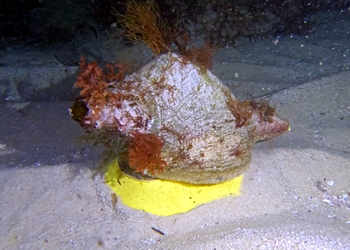 ![]() Birnenschnecke (Volema pyrum) vor der Küste Tanzanias. Bild: Pierre-Louis Stenger (iNaturalist). |