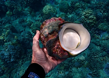![]() Grüne Turbanschnecke (Turbo marmoratus): Französisch Polynesien. Bild: Andy Dalton (iNaturalist). |