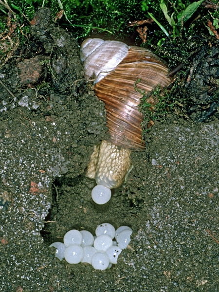 Weinbergschnecke bei der Eiablage. Bild: ©