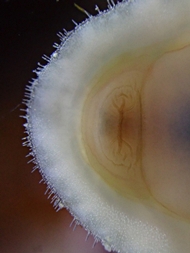 ![]() Kopf einer Käferschnecke (Lepidochito- na cinerea): La Rocque, Jersey, GB. Bild: Chris Isaacs (iNaturalist). |