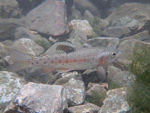![]() Regenbogenforelle (Oncorhynchus mykiss): Pasadena, USA. Bild: Susan Hopkins (iNaturalist). |
