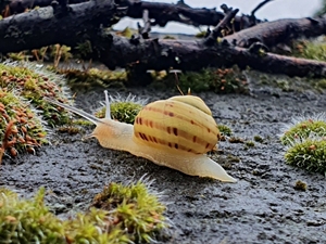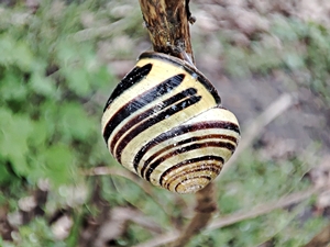 ![]() Gartenbänderschnecke (Cepaea hortensis) mit ungewöhnli- cher Bänderung: Ljubljana, Slowenien. Bild: Jurij Strith (iNaturalist). |