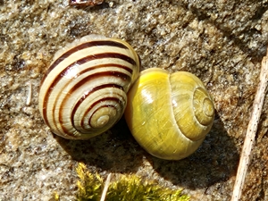 Bänderschnecken der Gattung Cepaea (Held 1838) gab es in Mitteleuropa früher vier verschiedene Arten, von denen die beiden am weitesten verbreiteten und bekanntesten Arten die größere Hainbänderschnecke oder Schwarzmündige Bänderschnecke (Cepaea nemoralis) und die kleinere Gartenbänderschnecke oder Weißmündige Bänderschnecke (Cepaea hortensis) sind. Beide unterscheiden sich durch ihre Größe und durch die charakteristische Farbe ihrer Mündungslippe.