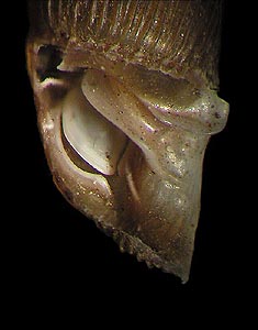![]() Schließapparat (Clausiliar) der Gemeinen Schließ- mundschnecke (Alinda biplicata). Bild: Jiří Novák, biolib.cz. ![]() |