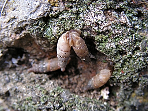 ![]() Endwindungen von Alinda biplicata, geöffnet. Sichtbar sind die Schalenspindel (Columella) und das Clausilium. Bild: Mathijs Zonneveld (iNaturalist). ![]() |
