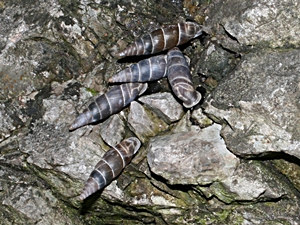 ![]() Bosnische Schließmundschnecken (Herilla bosniensis) in der Klausen bei Mödling. Rechts: Palatalansicht. Bilder: © Alexander Mrkvicka, Wien. |