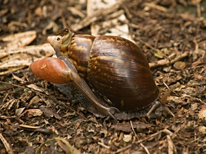 ![]() Rosige Wolfsschnecke (Euglandina rosea) greift Achatschne- cke (Lissachatina fulica) an. |