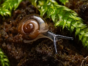 ![]() Weitmündige Glanzschnecke (Aegopinella nitens). Bild: © Stefan Haller, (schneckenfoto.ch). |