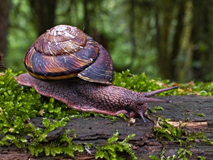 ![]() Pazifische Seitenbandschnecke (Monadenia fidelis, Xanthony- chidae), ein amerikanischer Verwandter der Helicidae. Bild: Thomas Barbin (iNaturalist): Capital, BC, Canada. |