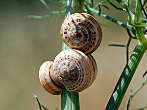 ![]() Dünenschnecken (Theba pisana) in der Camargue. Bild: Fritz Geller-Grimm. |