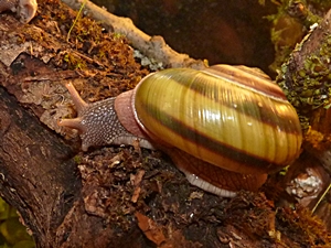 Die Grüne Koboldschnecke (Hemiplecta wichmanni) aus Indonesien gehört zur Schneckenfamilie der Ariophantidae. Diese in Indien und Südostasien vorkommende tropische Schneckenfamilie soll auf einer getrennten Seite genauer beschrieben werden, da wir nennenswerte Unterschiede in Körperbau und Verhalten im Vergleich mit einheimischen Landschnecken festgestellt haben.