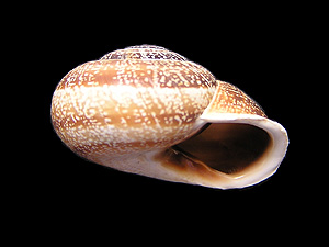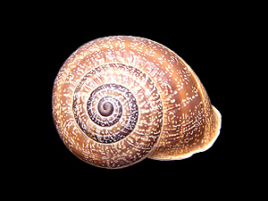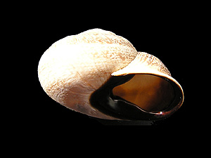 ![]() Schwarzmund-Feldschnecke (Otala lactea): Apikalansicht (oben), Mündungsansicht (unten). Beachte den charakteristi- schen Mündungszahn am unteren Mündungsrand! Bilder: Robert Nordsieck. |