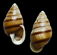 ![]() Euglandina frisst eine Bradybaena similaris. Bild: Bill Frank, Jacksonville Shell Club. |