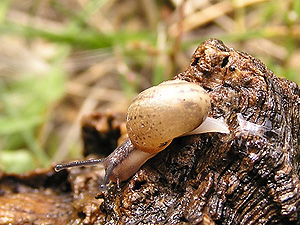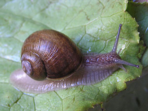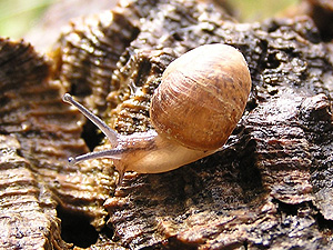 ![]() Diese frisch geschlüpfte einen Tag alte Weinbergschnecke hat noch eine weiche Schale, in die erst Kalk eingelagert werden muss. Bild: Robert Nordsieck. |