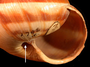 ![]() Nabel der italienischen Weinbergschnecke (Helix ligata). Bild: Karl Edlinger. |
