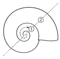 Dazu zählt man von der Schalenspitze nach einer Halbwindung die Umgänge bis zur