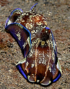 ![]() Blasenschnecke (Bulla ampliata) von der Insel Moorea, Franzö- sisch Polynesien. Bild: Gustav Paulay (CalPhotos). |
