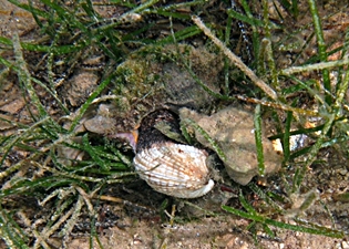 ![]() Purpurschnecke (Hexaplex trunculus) überfällt eine Venusmu- schel. Bild: Roberto Pillon. |