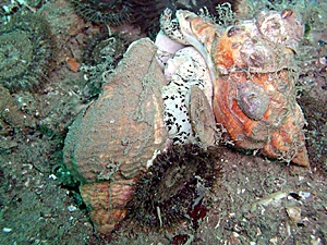 ![]() Wellhornschnecken (Buccinum undatum) bei der Paarung. Bild: Paul Newland, Marine Life Network. |