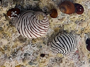 ![]() Zebra-Rennschnecken (Vittina natalensis) aus KwaZulu-Natal, Südafrika. Bild: Ricky Taylor (iNaturalist). |