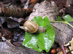 ![]() Eine ganz kleine Weinbergschnecke und ein Fleckchen Grün. Bild: Robert Nordsieck. |
