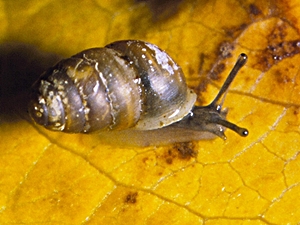![]() Gefährdet: Moosblasenschnecke (Aplexa hypnorum). Bild: © Alexander Mrkvicka, Wien. |