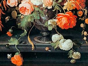 ![]() Abraham Mignon (1640 – 1679) "Blumenstilleben mit Insekten und zwei Schnecken", Ausschnitt. |