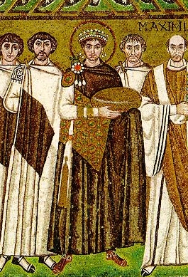 ![]() Kaiser Justinian I., Mosaik in San Vitale, Ravenna. |