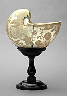 Die Ausstellung "Die Entdeckung der Natur" im Naturhistorischen Museum in Wien hatte 2007 gleich mehrere Ausstellungsstücke vorzuweisen, die unter Verwendung von Weichtier-Schalen entstanden waren, darunter eine Lavabo-Garnitur von Abraham I. Pfleger, Augsburg, um 1585, aus Mördermuschel (Tridacna sp.) und Tritonshorn (Charonia tritonis), sowie einen Pokal aus der Schale eines Nautilus aus den Niederlanden um 1650. Die wenigen Arten von Nautilus sind bekanntlich die einzigen rezenten Schalen tragenden Kopffüßer.