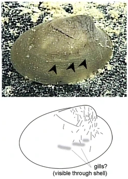 ![]() ![]() Dorsal-Ansicht von Neopilina galatheae. Unten: seitl. Ansicht. Quelle: Monoplacophora (Univ. Mich. Mus. Zool. 1995). |
