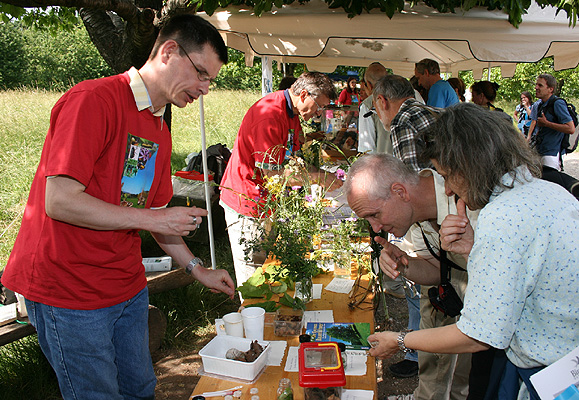 Der Autor erklärt die Schneckenfunde interessierten Besuchern am Fest der Artenvielfalt 2008. Bild: Alexander Mrkvicka.