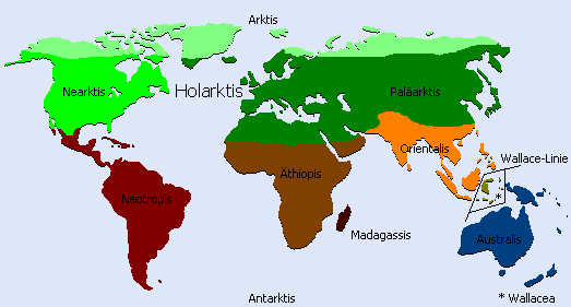 Die Faunenprovinzen der nördlichen Hemisphäre werden aufgrund der Ähnlichkeit ihrer Faunen als Holarktis (griechisch: holos = ganz) zusammengefasst. Dabei unterscheidet die Tiergeographie Paläarktis, d.h. die Faunenprovinzen der Alten Welt (griechisch: palaios = alt) und Nearktis, d.h. die Faunenprovinzen der Neuen Welt (griechisch neos = neu).